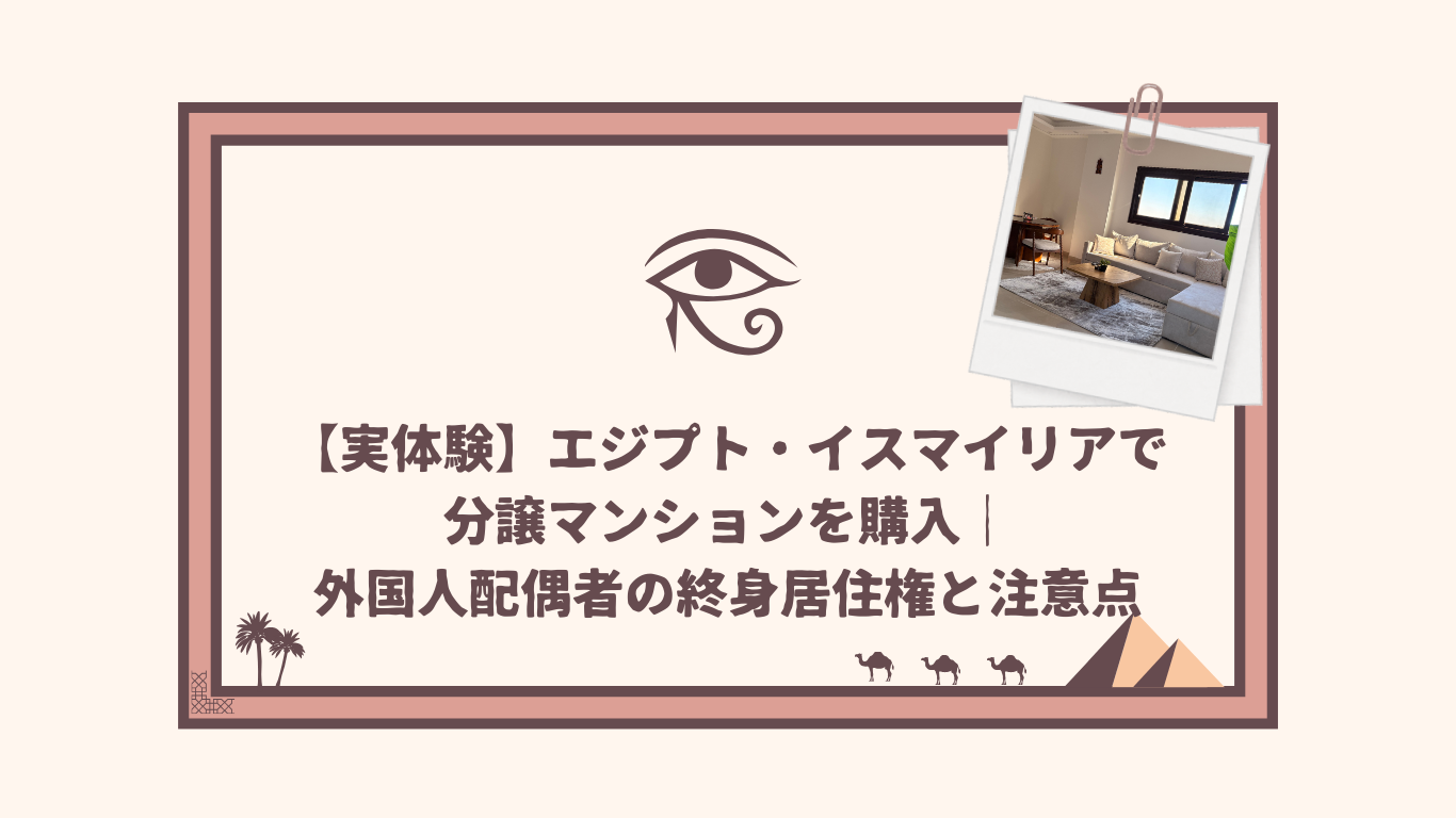 この記事では、実際にイスマイリアで物件を探し、購入し、契約を進めた流れと、外国人配偶者として気になった終身居住権について、実体験をもとにまとめました。