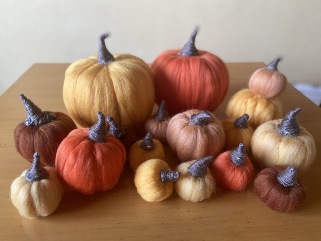 昨日はお休みだったので、職場の秋ディスプレイ用のかぼちゃを作っていました。
