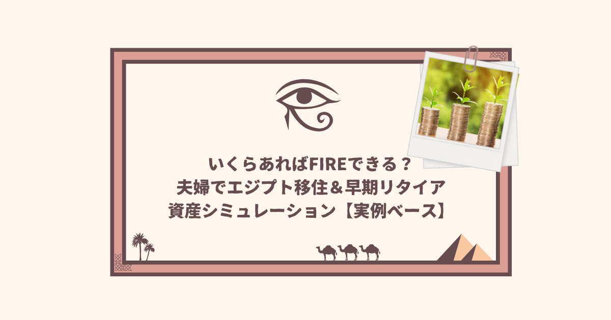 エジプトの高金利と比較的低い生活費、そして不動産一括購入による住居費ゼロを組み合わせれば、少ない元本でも夫婦でFIRE生活が可能なケースがあります。