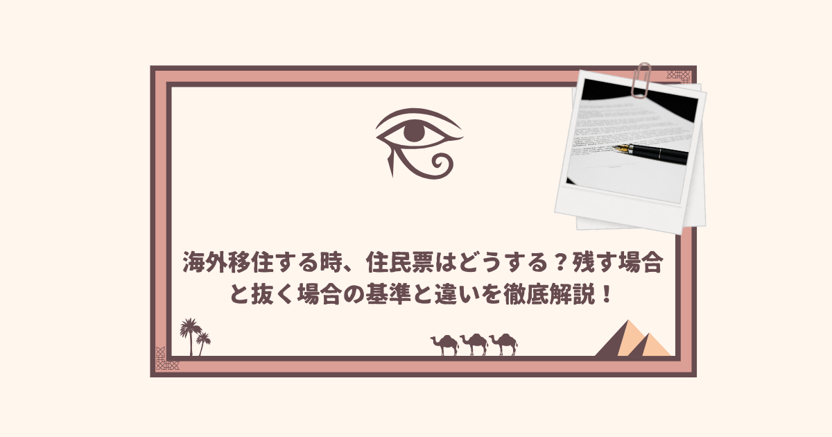 海外移住が決まった時、「住民票はどうすればいいの?」と悩む方は多いのではないでしょうか。