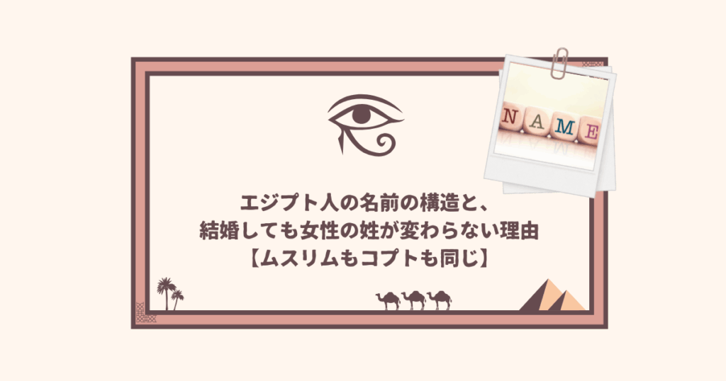 エジプト人の名前の構造と、結婚しても女性の姓が変わらない理由【ムスリムもコプトも同じ】